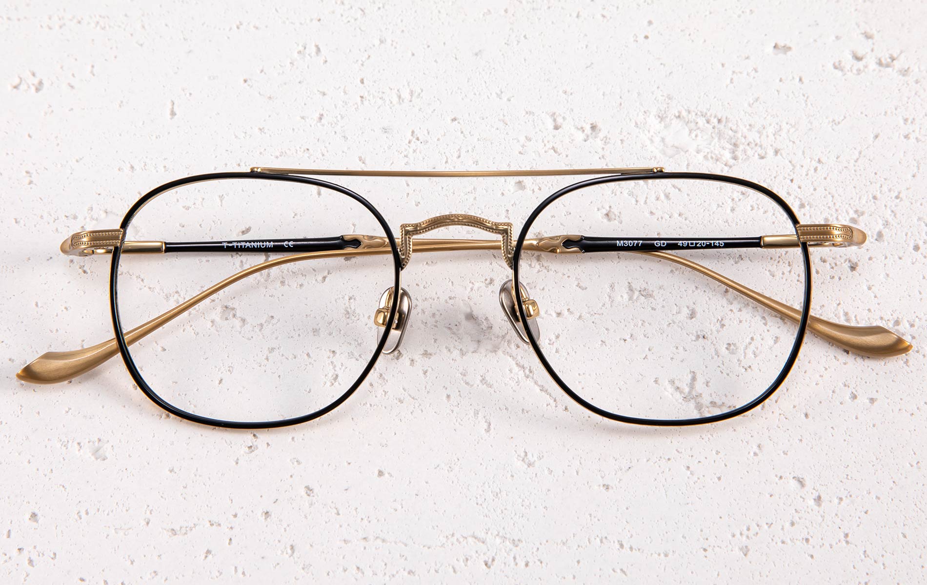 フレーム: チタン + 植物由来のアセテート。手作り