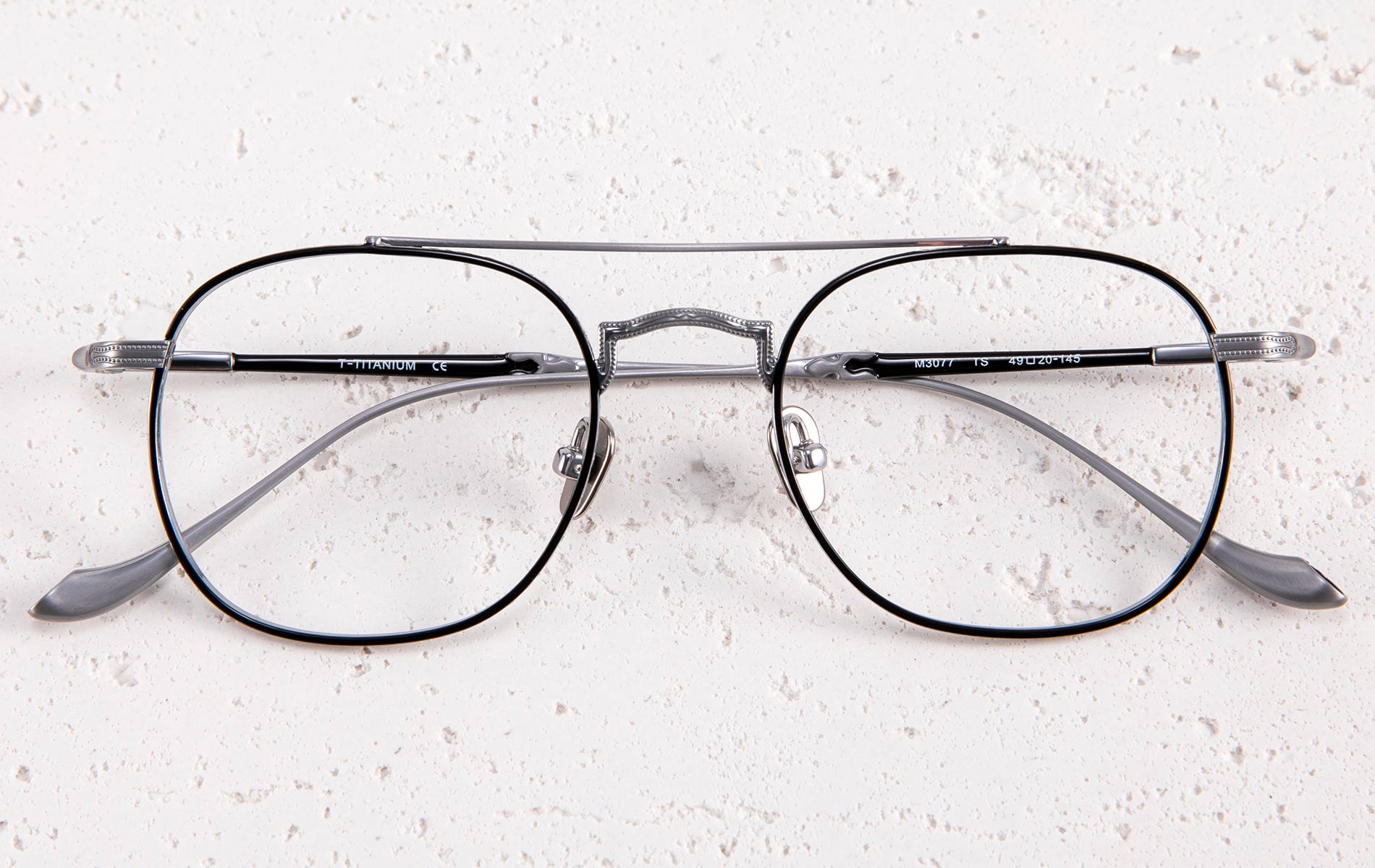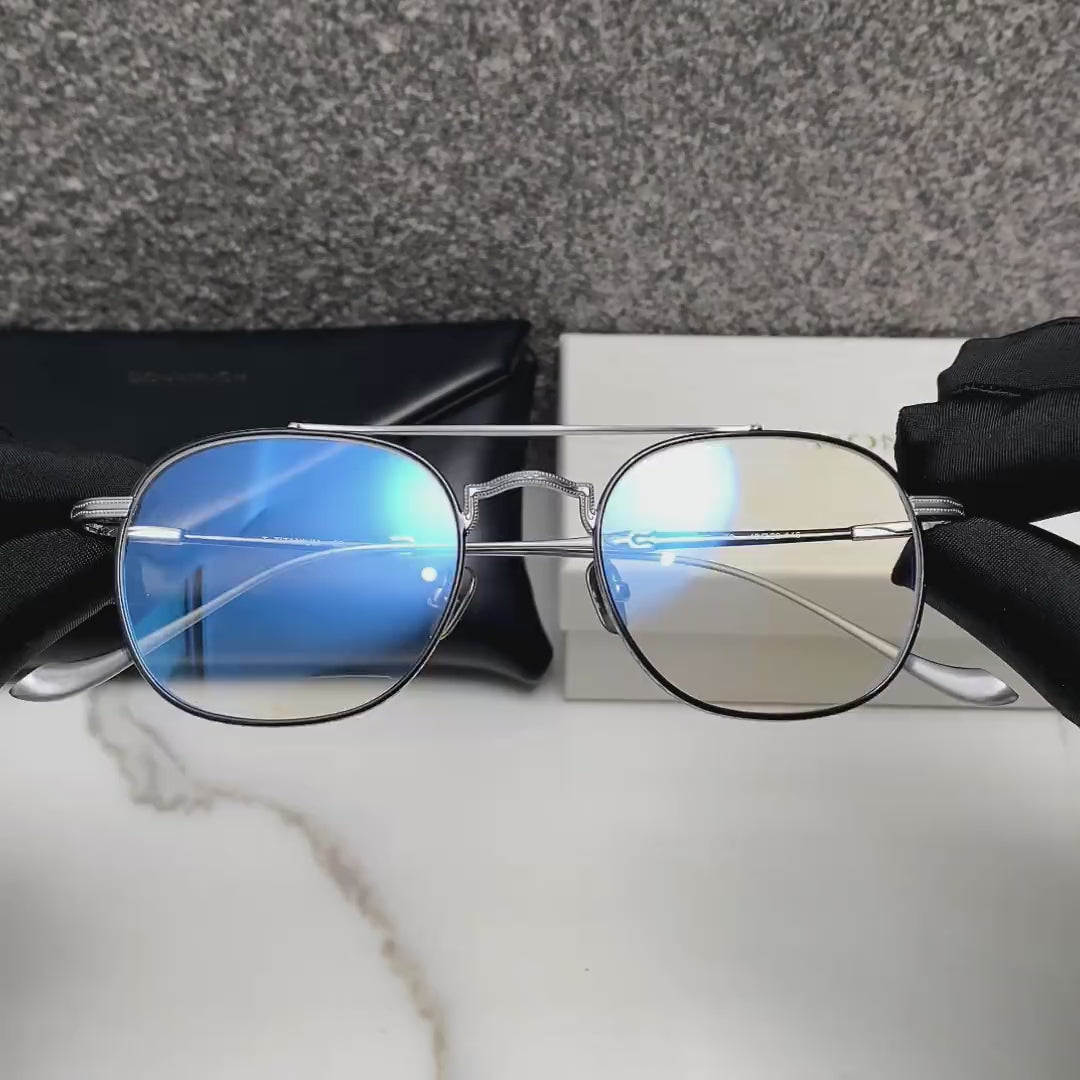 フレーム: チタン + 植物由来のアセテート。手作り