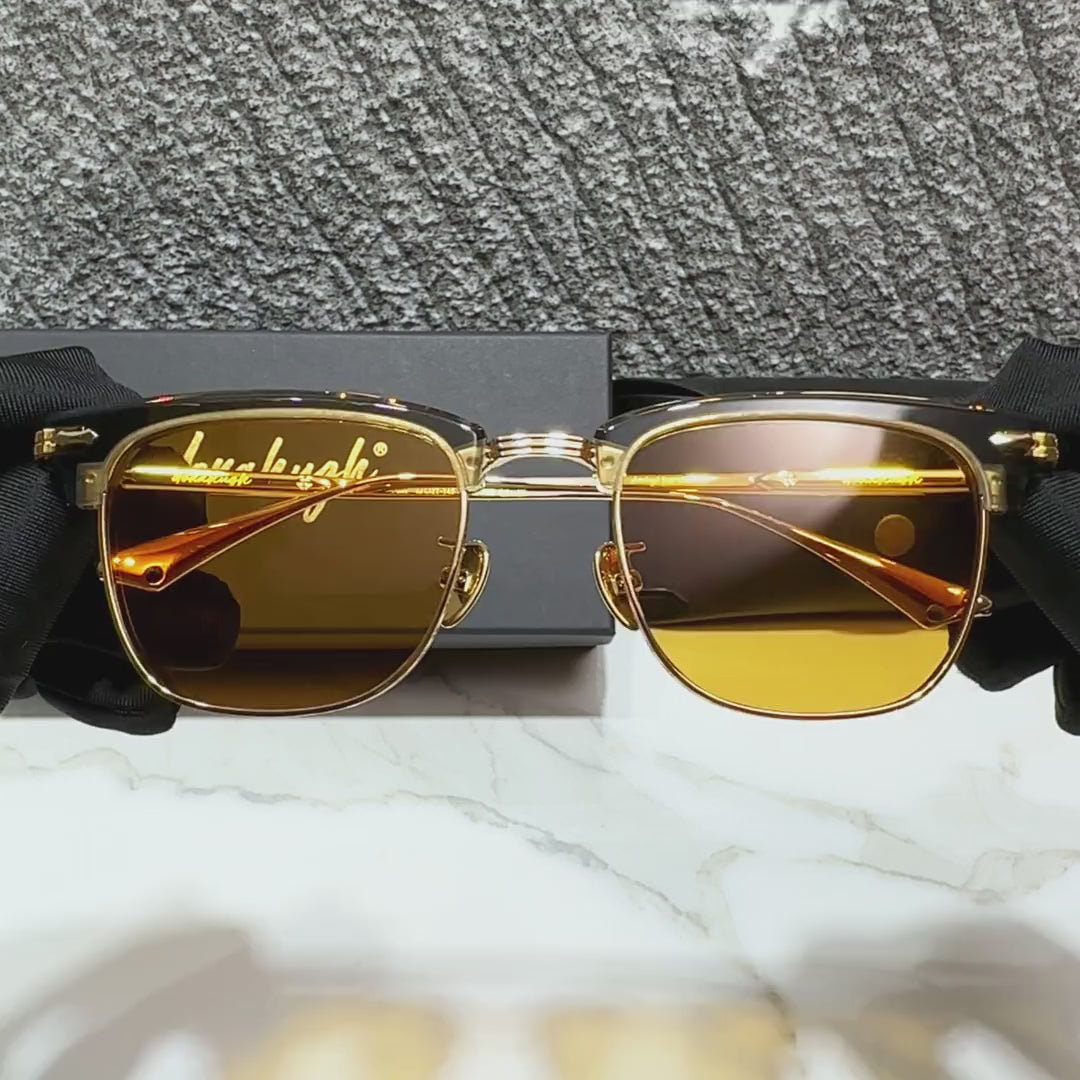 フレーム: チタン+植物由来アセテート。手作り製作